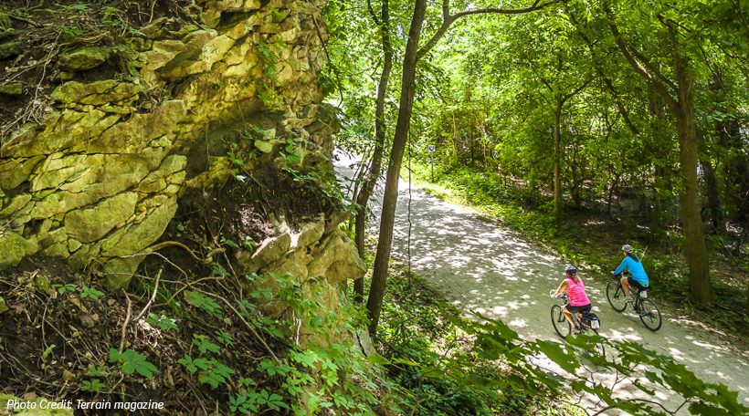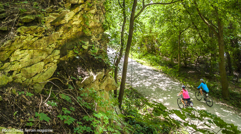 Missouri’s Katy Trail State Park has the longest developed rail-trail in the U.S., spanning 240 miles between Clinton and Machens. The park was built on the former corridor of the Missouri-Kansas-Texas Railroad (MTK or Katy) and winds through some of the most scenic areas of the state with the majority of the trail following the Missouri River quite closely. There are 26 trailheads and options for bicyclists, walkers, and equestrians. Whether you are nature lover or history buff, the trail offers opportunities for recreation, a place to enjoy nature and an avenue to discover the past.