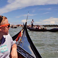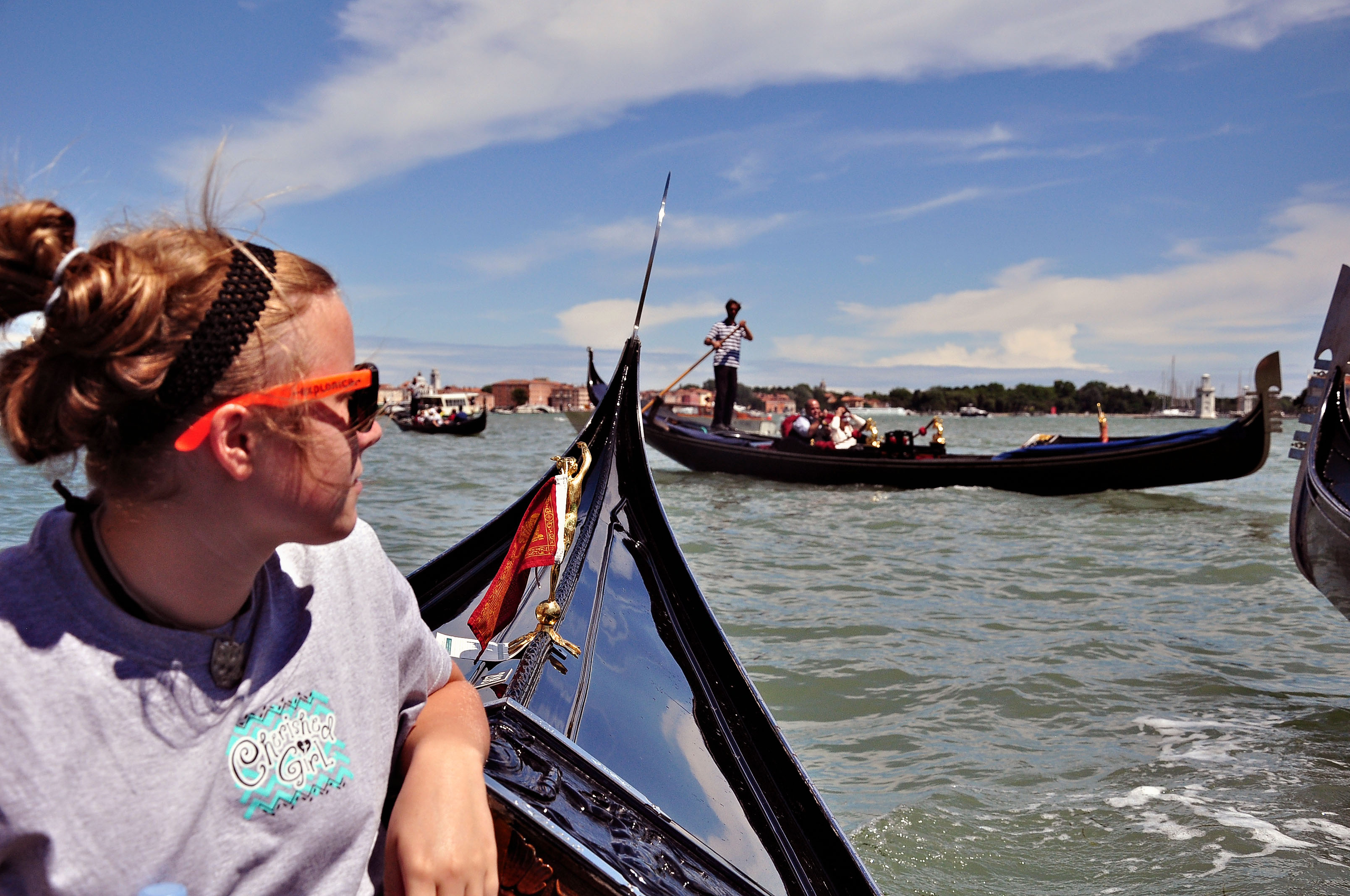 Jenna, of Red Oak, Oklahoma, enjoys the sights of Venice during a gondola ride.