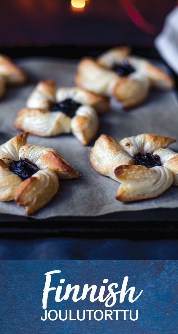 Finland | Traditional Finnish star-shaped puff pastry with prune, apple or raspberry jam.