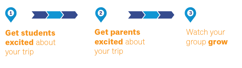 Your students are excited, and so are their parents. Now, it’s time to keep that momentum going by continuing to promote the trip in places like the classroom, social media, your school’s website and bulletin boards.