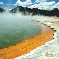 Before seeing Rotorua, you'll definitely smell it due to the sulfur. Consider it an introduction to a place that is completely unique. Rotorua offers a fascinating view into the Earth's volcanic center. Clouds of steam seem to magically appear throughout the city from Rotorua's four major thermal centers. One geyser erupts about 20 times a day and can spout up to 100 feet.