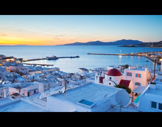 Now one of the most popular of the Aegean islands, Mykonos is rugged and beautiful at the same time, and is one of the smallest islands of the Cyclades – it’s only 10 miles long and 7 miles wide. Mykonos is absolutely picturesque - thatched windmills, whitewashed streets, and a medieval quarter boasting cubic houses with picturesque balconies, and churches with red or blue doors. You can walk along the main shopping street, Matoyanni, and search for jewelry and clothing, or just take a break in one of the cafes that line the street. You’ll also visit the capital, Hora, with its colorful harbor in which little fishing boats nest happily side by side with luxury yachts.