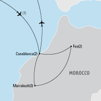 Wind your way through Casablanca’s Old Medina bursting with vendors selling rugs, silks and spices. Then travel to Fes, the Kingdom of Morocco’s second largest city, which is divided into three unique areas. And one of them—Fes el Bali—is a UNESCO World Heritage site. Finally, move on to Marrakesh (via Meknes, Azrou & Beni Mellal) for a city exploration brimming with monuments, palaces and mosques.