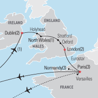 Explore Dublin’s cityscape of medieval castles and modern buildings, cross the Irish Sea to visit the smallest village in Northern Wales with the longest name in the world, and marvel at the royal architecture of London and the glittering monuments of Paris.