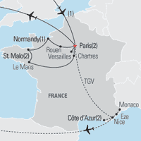 Experience France’s glittering capital and explore Rouen’s cathedral with its Gothic façade and mismatched spires. Head to Brittany and visit its walled seaport town of St. Malo, once known as the city of pirates, perched on the shores of the English Channel.