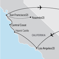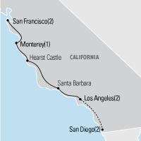 Walk across the Golden Gate Bridge, tour a Fortune Cookie factory, ride a cable car and visit the famous Alcatraz Island then head down the Pacific Coast to explore the home of the stars, see the Hollywood sign high on the hill and walk down the Walk of Fame.