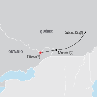 Get a little taste of France with Québec’s cobbled streets, outdoor cafés and crêperies, and head to Montréal to explore the shops, hotels and offices in its 19-mile underground city. Experience the capital of Ontario with a walking tour of Embassy Row, a visit to the National Gallery and Parliament Hill, and a Canadian Museum of History visit. Then discover the natural side of Ottawa with a visit to the caves and aerial parks of Laflèche nature park.
